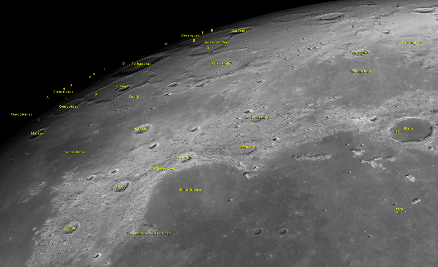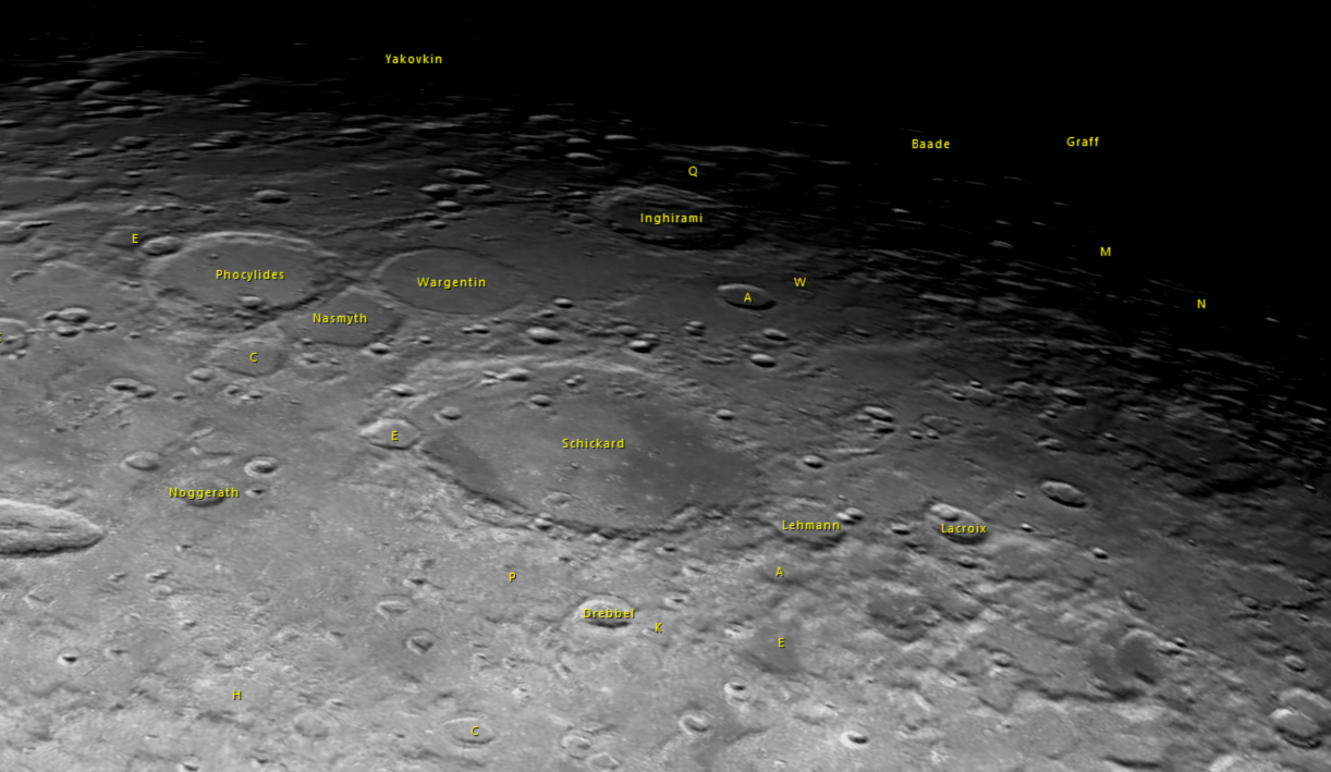 Entre la mer des Humeurs et la mer Orientale se trouve Darwin, de belles entailles sont visibles dont rimae Darwin: