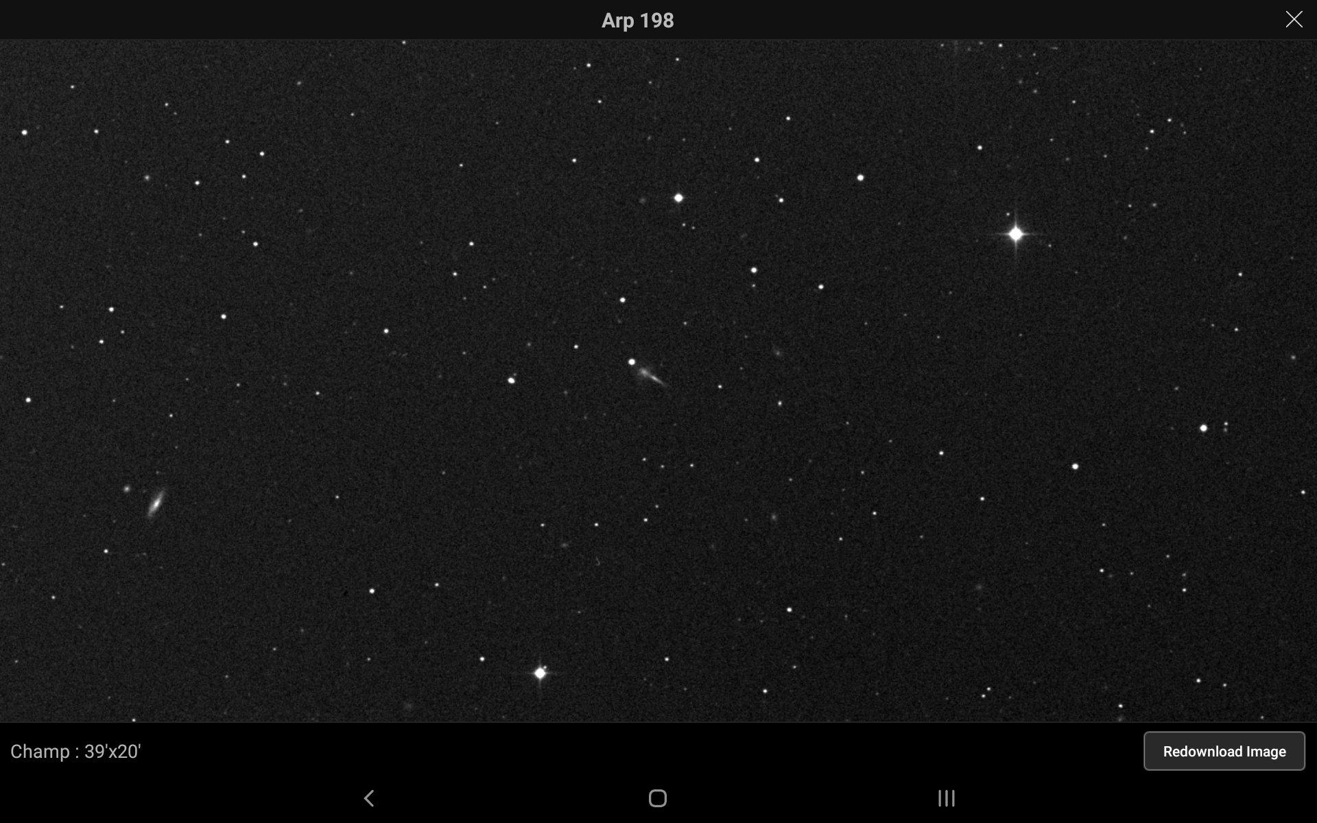 Voici notre objet de la semaine, @ 12:04:44 +60d40m20s. Les deux images ne mesurent que 5 minutes d'arc : dans NED, elles sont répertoriées comme un triplet de galaxie avec un décompte de population