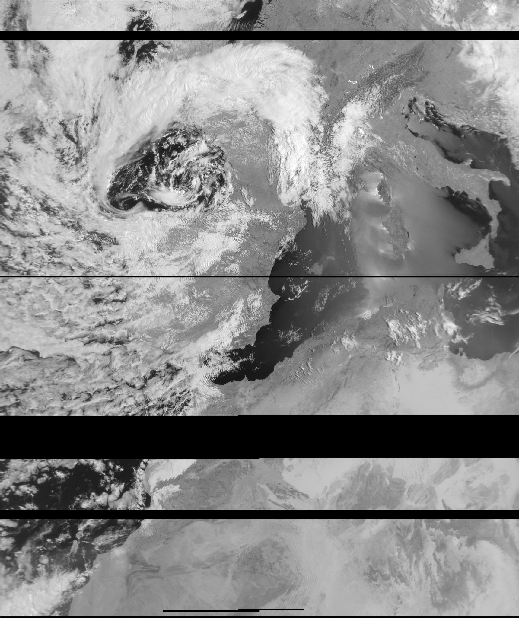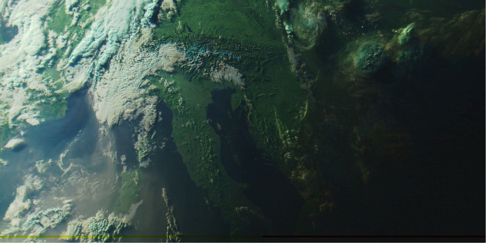 METEOR M2 ce soir, 20h13, vue globale d'abord, puis image suivante détail sur l'Italie qui entre dans la nuit, les Alpes, la France/Espagne à gauche en haut, puis la suivante, je pense que c'est le Danemark au centre sous les nuages, la Baltique à droite, la suède..