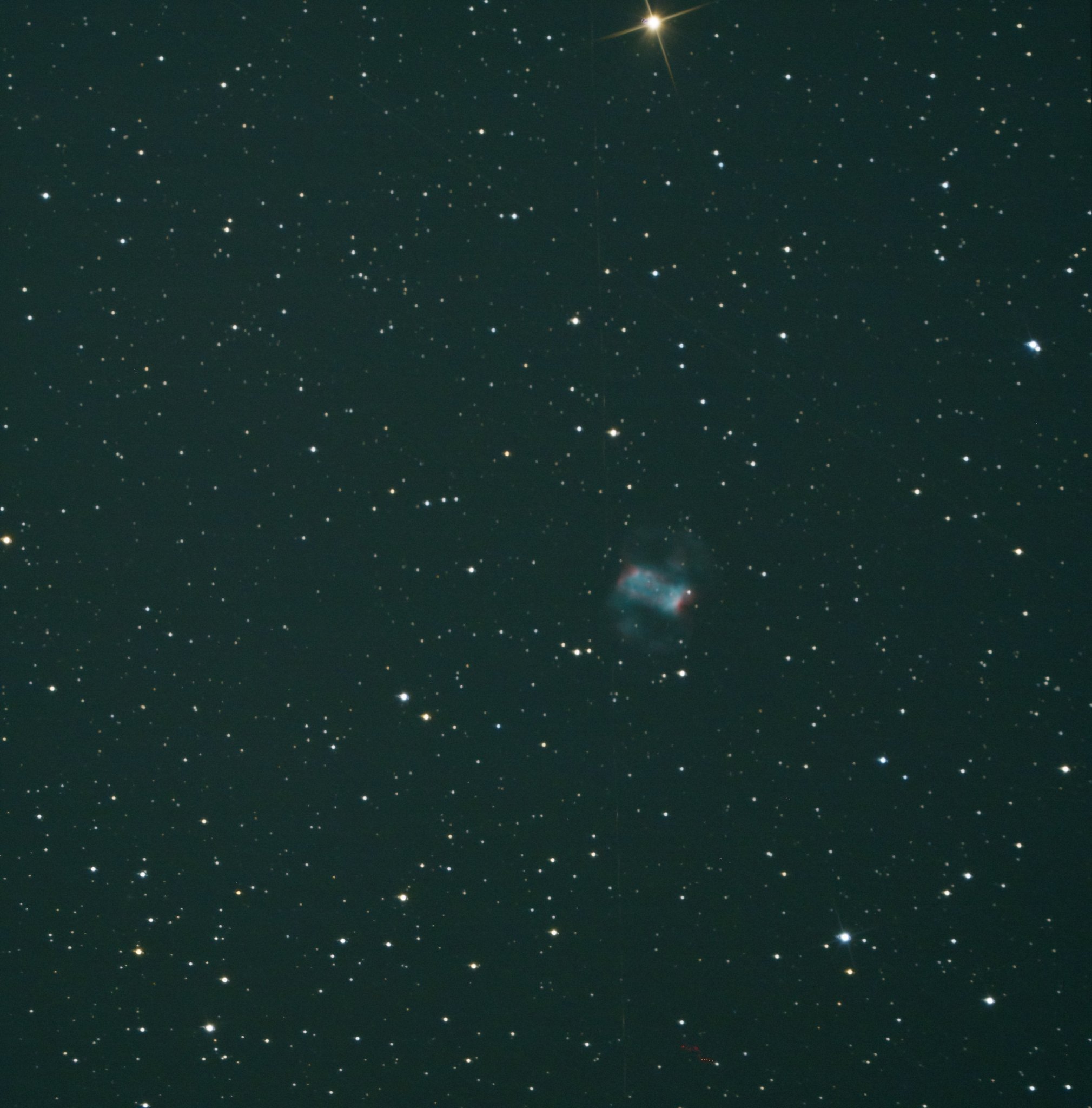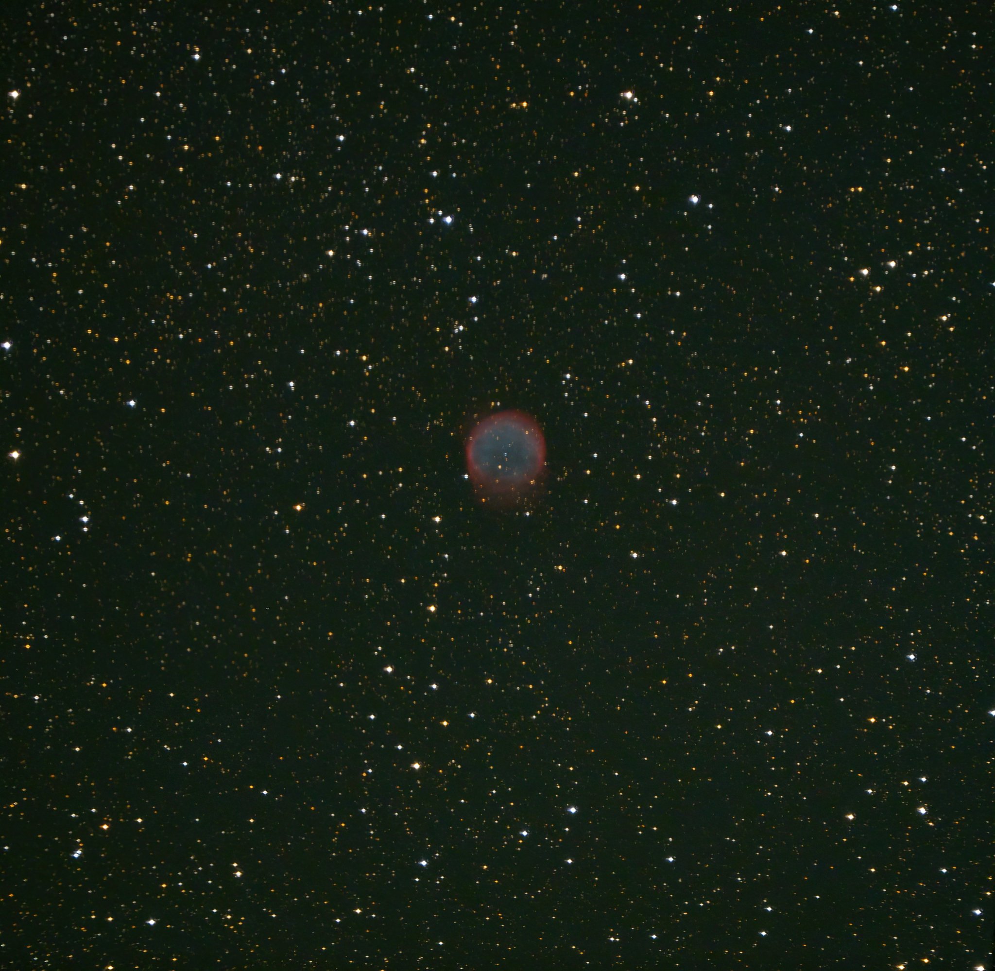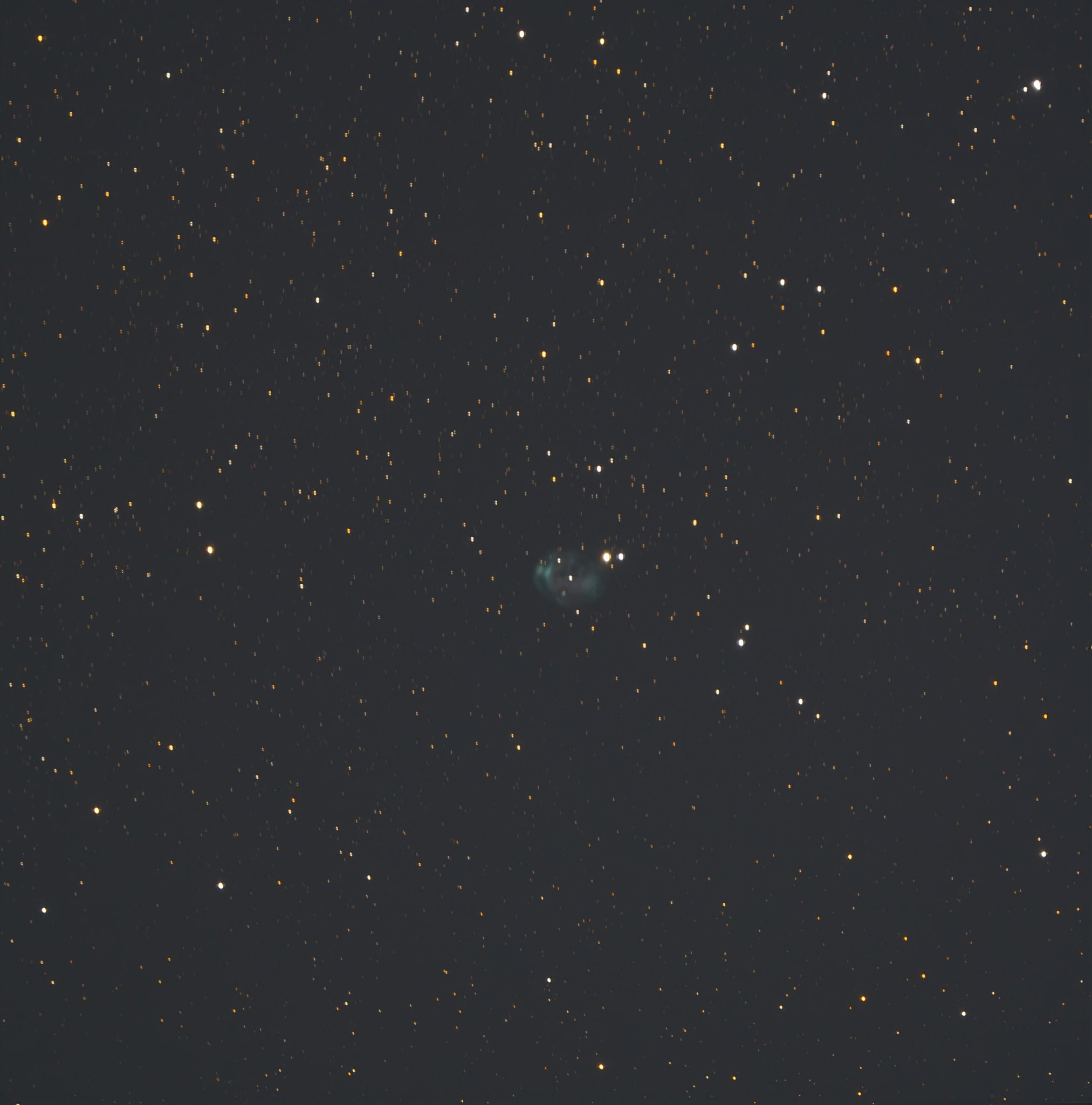 à nouveau une petite nébuleuses planétaire capturée cette nuit en fin de session sur Saturne, Jupiter et Mars. NGC1535, la nébuleuse de l'Œil de Cléopâtre. 2 ser en poses de 15s et 8s assemblés sous Siril et beaucoup de trafficotage pour la faire ressortir du bruit