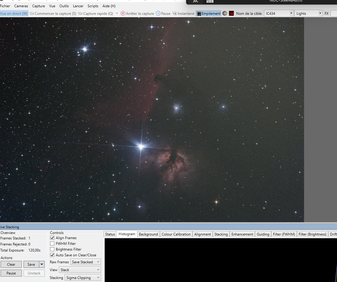 Tu mets 1s et 500 de gain, tu cliques où tu veux aller dans CdC, tu cliques sur l'éclair pour bouger le télescope, tu retournes sur la caméra quand ça bouge plus tu cliques la cible (résolution et resynchronisation de plaque) tu attends que ça rebouge plus puis tu mets 30s, 300 de gain tu rentres un nom et tu cliques "empilement". La VA basique et facile même à 11 ans