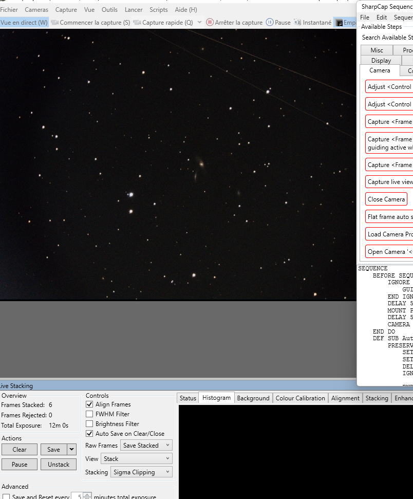 Oui je fais avec Sharpcap, je règle le gain à 0, je mets l'exposition à 0.5s et je charge un dark fait avec ce gain/exposition, puis je règle mon écran à flat pour avoir l'histo à 50% avant de lancer la capture.Fabiolat74 a écrit : ↑28 févr. 2026, 20:57tu fais flat avec sharcap?? si oui pourrais tu prendre un screen_shoot sur l hystogramme quand tu le fais.