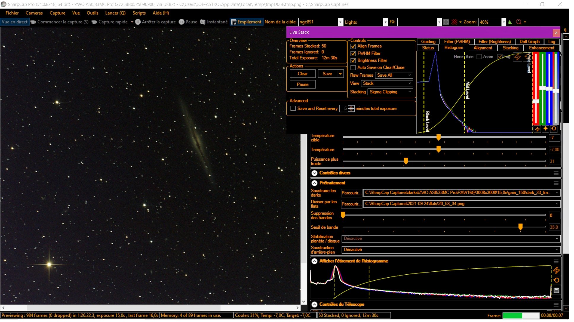 Matériel habituel AVX - Newt 150 , asi533 , SharpCap , pas de guidage . ir-cut monté - Dark et flats -