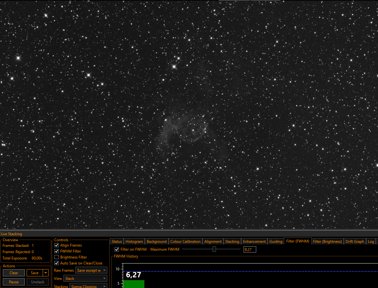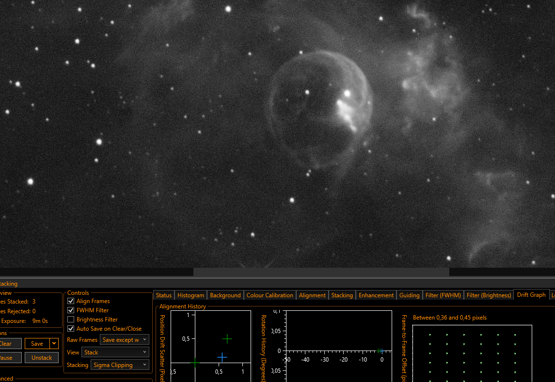 Bien comme j'ai le même suivit excellent qu'hier (autour de 0.4" rms) je repars sur ma bulle, d'abord de la luminance puis je ferais du Halpha