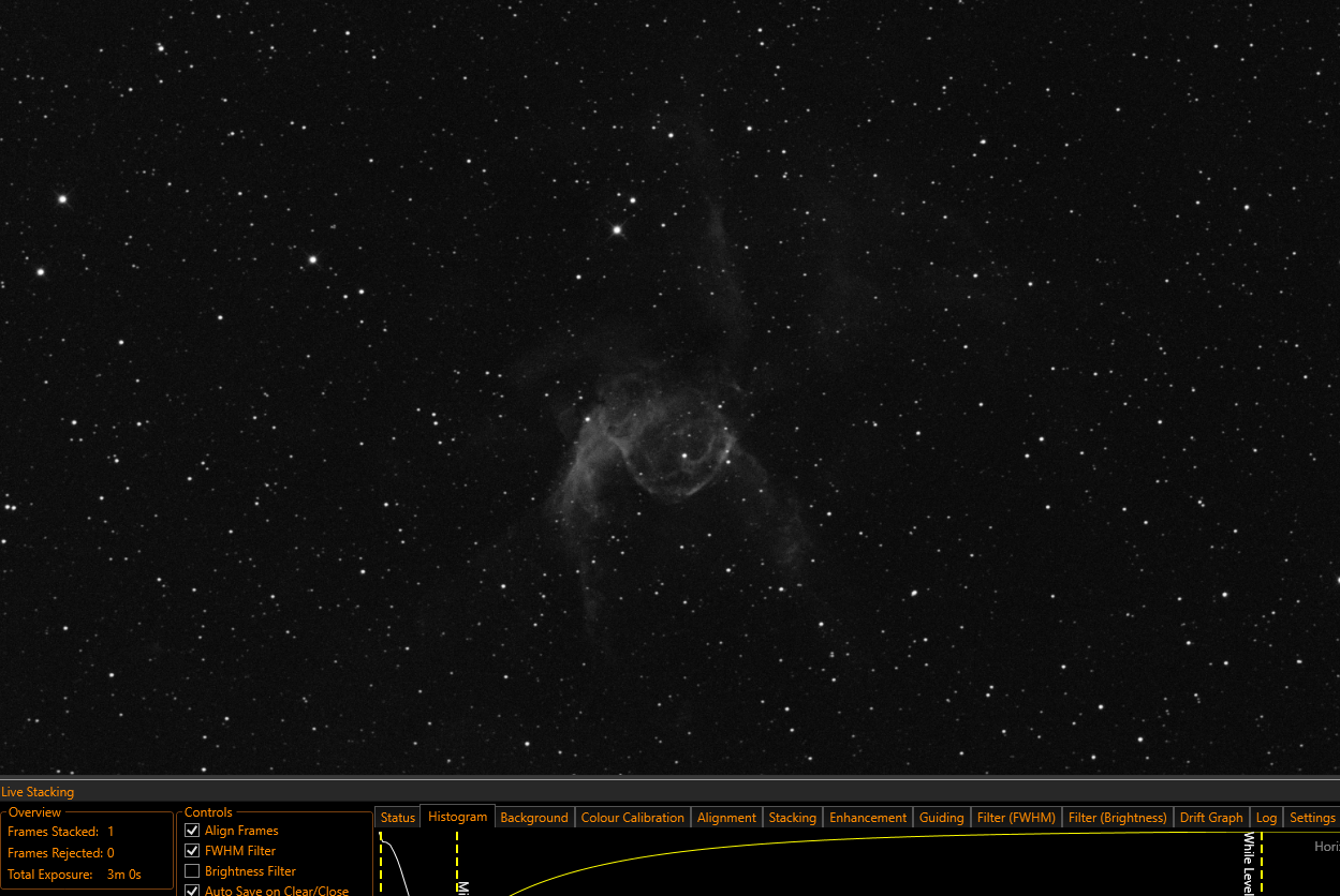 Bon j'ai du relancer le halpha car comme d'hab, SC n'avait pas activé le refroidissement de la cam malgré l'indicateur sur on. C'est un bug que j'ai signalé qd SC se plante et qu'on le redémarre mais bon... pas corrigé