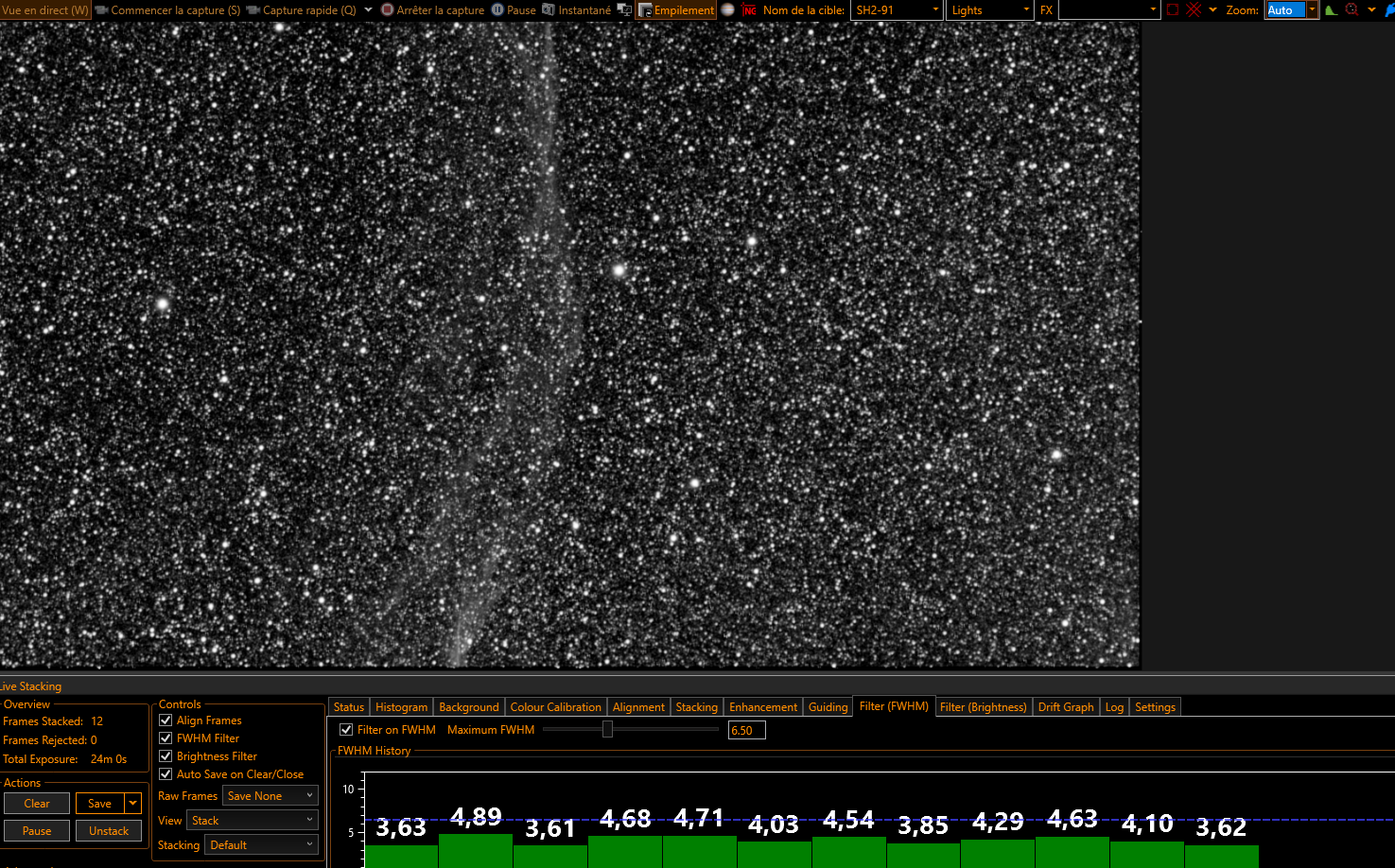 Pendant que NINA capture, j'empile avec Sharpcap.