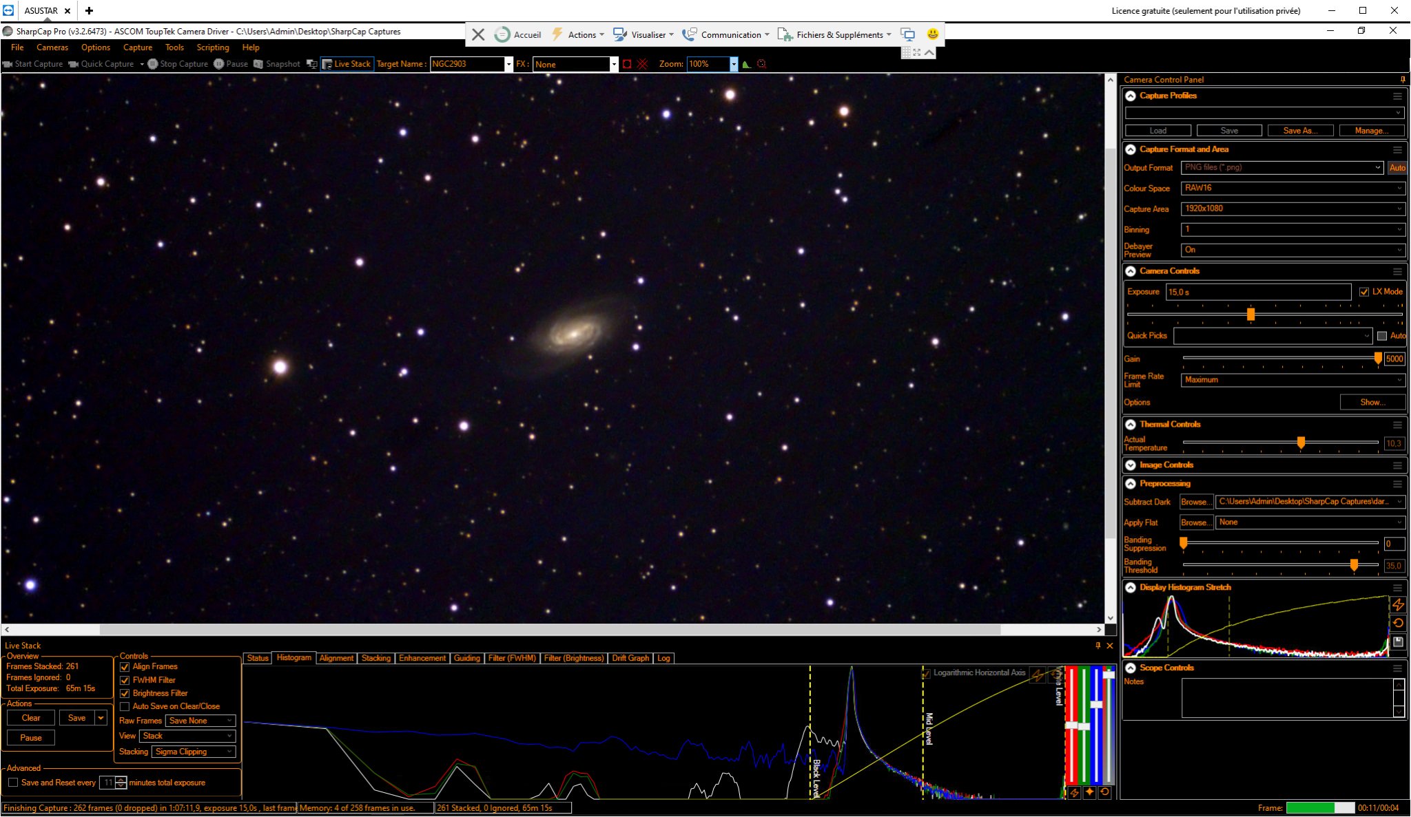 Le FWHM monte, ça se couvre... Avec le champ de l'Evoguide je peux aller voir la Mouette maintenant:
