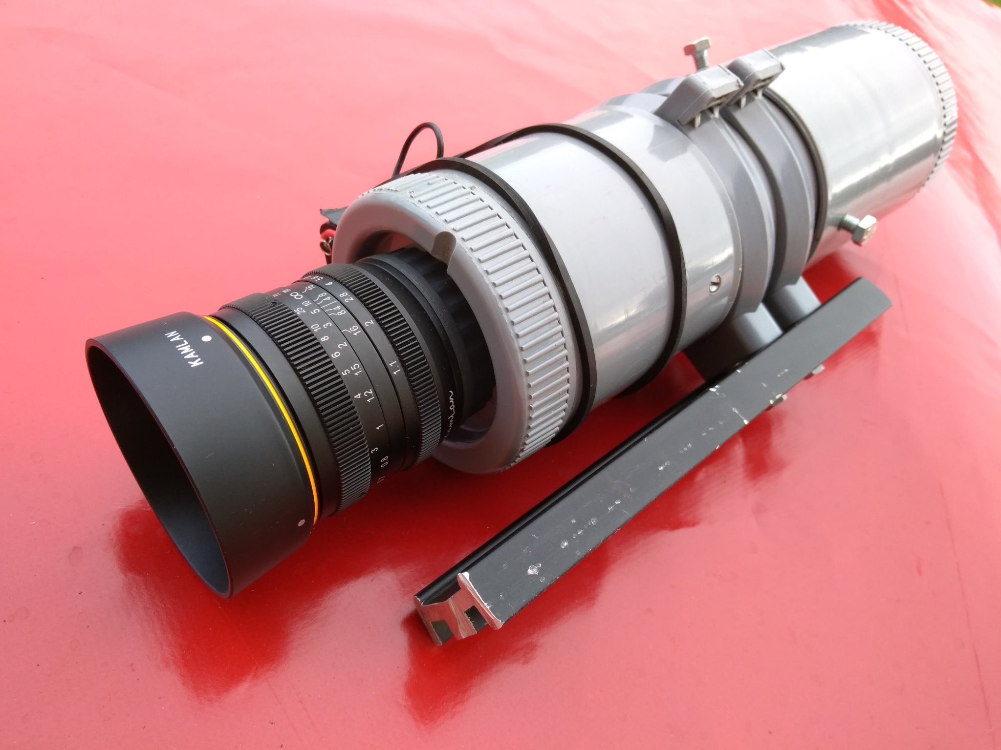 Malgré que je me sois bien amusé à explorer cette voie, d’une, ça prend du temps et de l’énergie, et de deux, le montage à base objectif de 135mm F2.8 – tube P8079HP – objectif 50mm F1.8 (en oculaire), me donne déjà toute satisfaction, pour les observations visuelles.