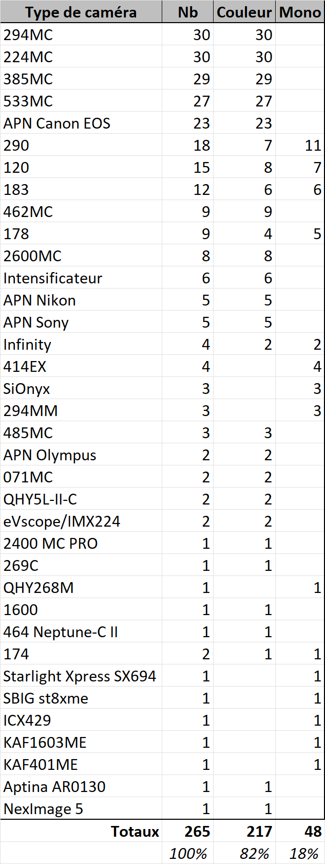 Nouvelle mise à jour du recensement des caméras des membres du forum AVA suite au message de @georges45 (ASI2400MC PRO) :