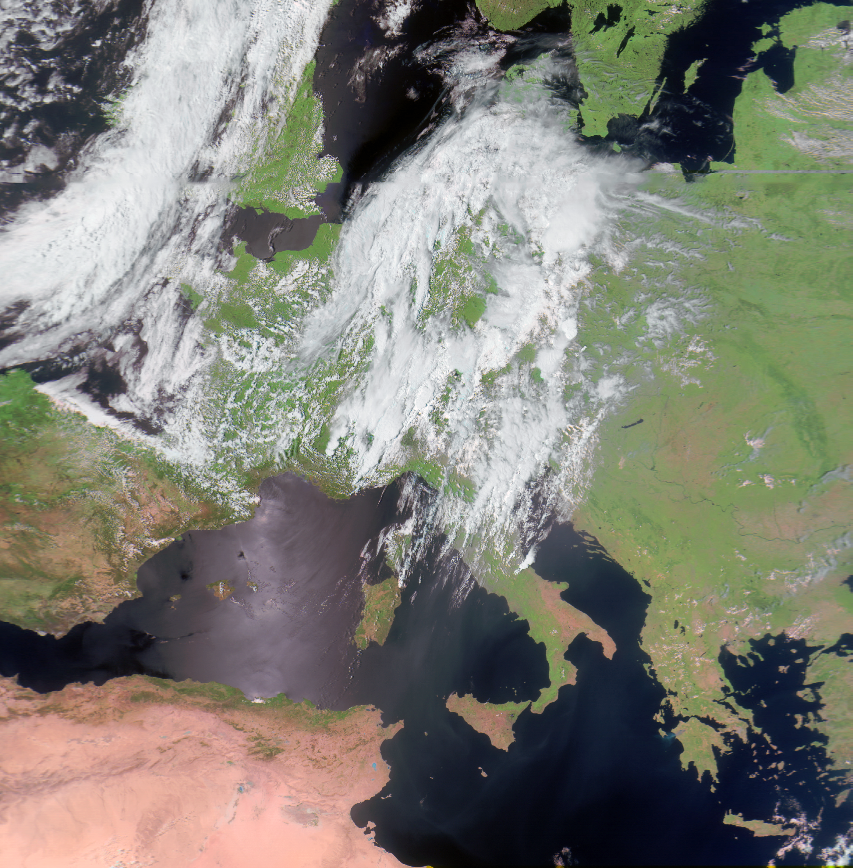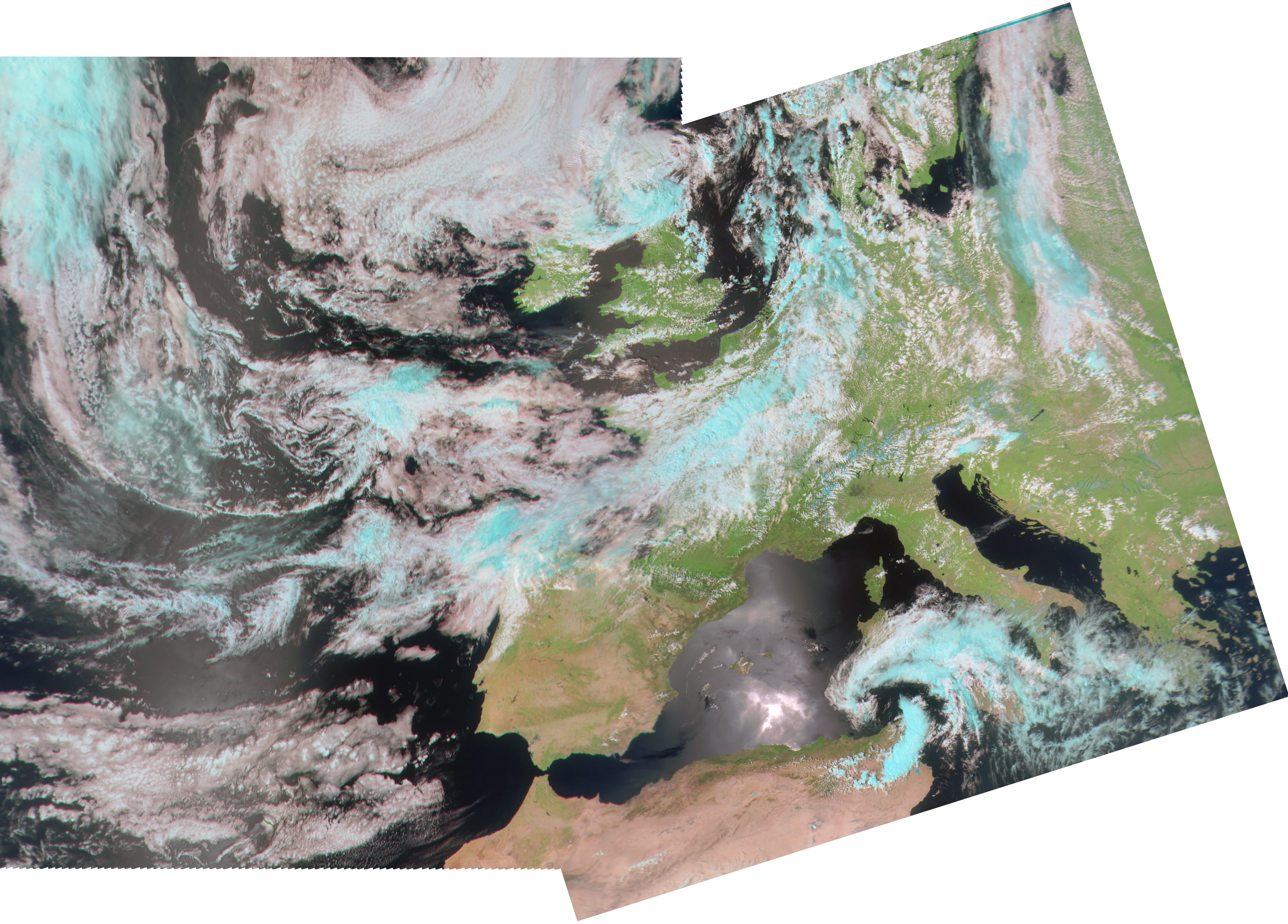 Composition avec NOAA15 de 11:00, NOAA18 de 11:30 et NOAA19 de 12:00, le sable semble s'être décalé vers le sud de l'Italie par rapport aux jours précédents