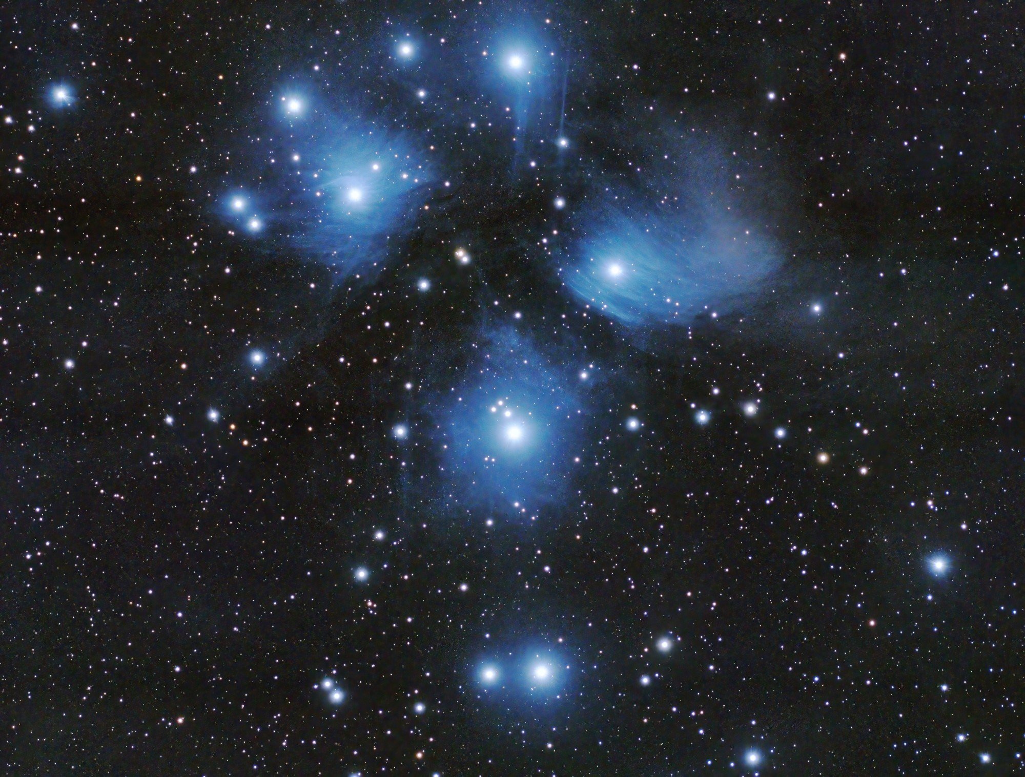 Je suis parti du fits de sauvegarde, vu que la version "empilée" puis starless, etc. était moins pêchue ! (et que j'aime bien M45 très saturée, comme vous le constatez