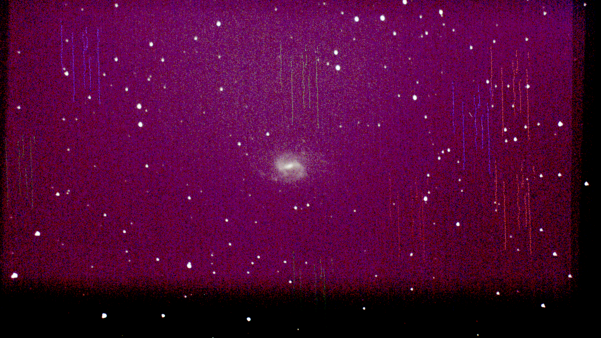 - Faire des darks pour enlever les pixels chauds (les trainées bleues et rouges)