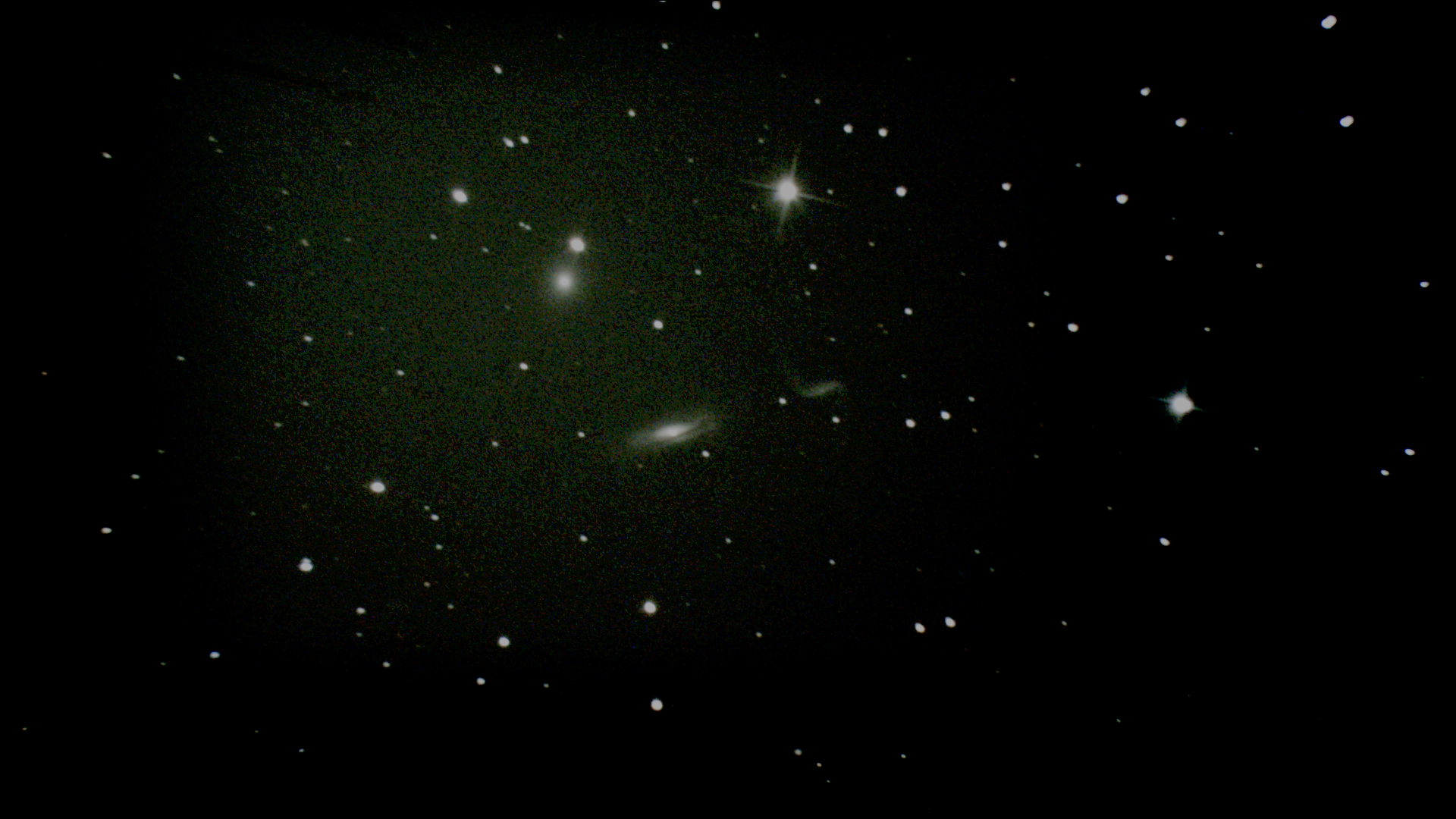 NGC 3189/3193/3187/3185 - 860 frames de 500ms. Beaucoup mieux que la derniere fois, et la je l'ai retouché sous Registax pour atténuer le contraste.