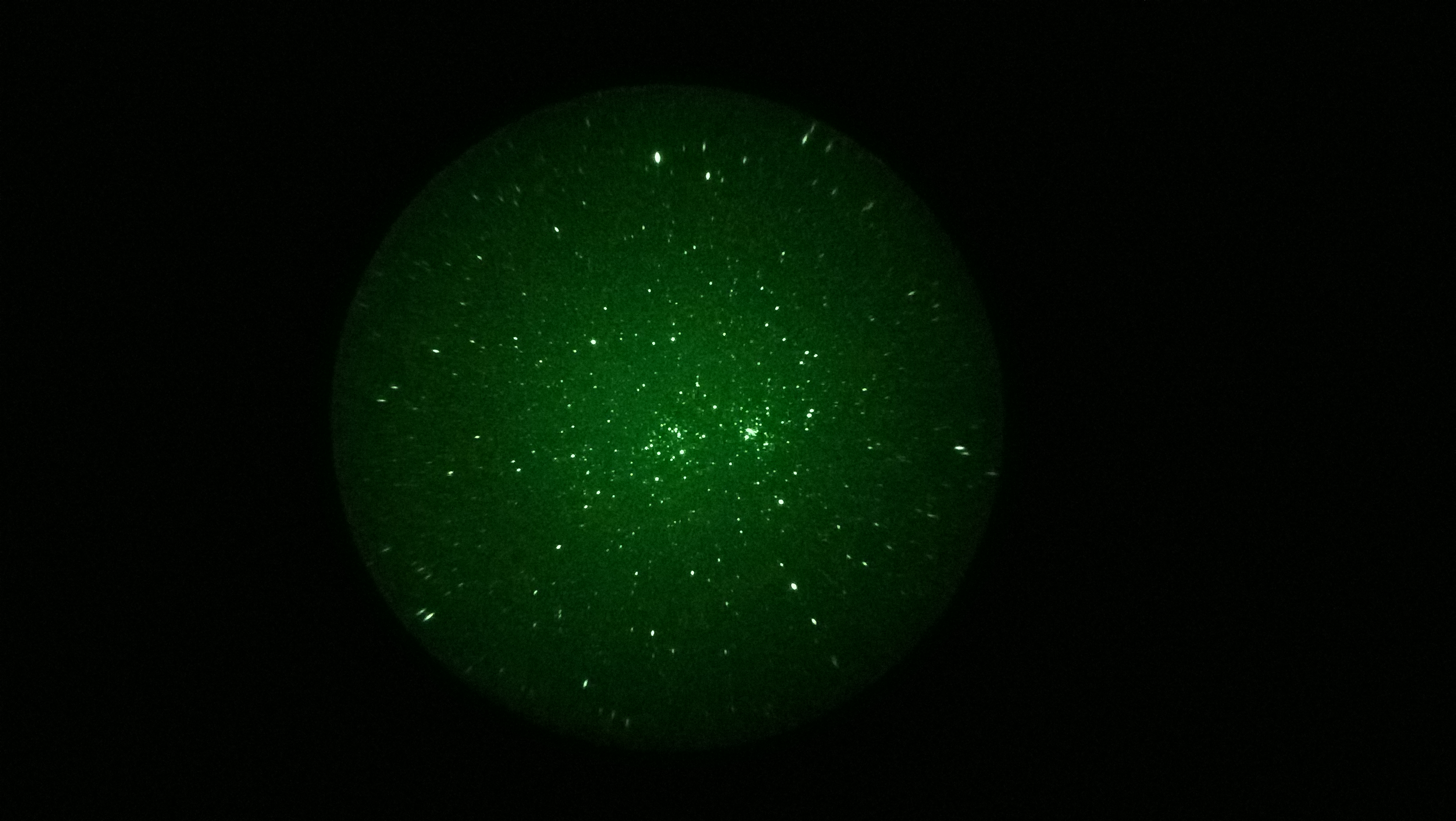Ampli: tube intensificateur P8079HP + objectif Canon 50 mm F/1.8, positionné lentille contre l'écran au phosphore